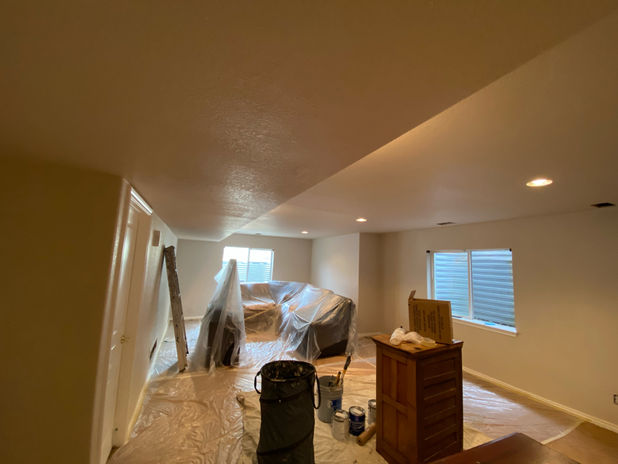 have been placed in the center of the room are covered with painters plastic. Small items such as portraits and any other fragile objects will have to be remove and place back by home owner. -